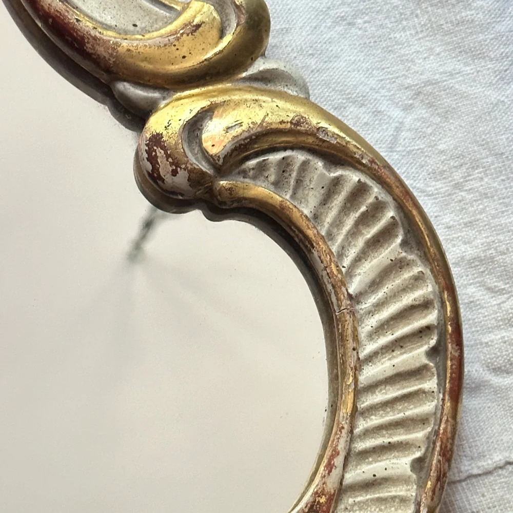 Within John Derian's curated collection of antique art and mirrors is this early 20th-century Austrian mirror. A white painted frame with gilded details and fluting, this mirror features ribbon motifs with a balanced, symmetrical design.